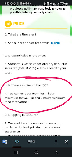 I can't fully explain just how pleasant of an experience this was. The staff was wonderfully friendly, the prices were incredibly fair, and the rooms were all lovingly cared for and clean. My friends and I were very loud with our Karaoke, and we were allowed to go all out just as we wanted. We made reservations for 4 hours, and that passed quickly with just how much fun we were all having. We had one issue with a single song that wouldn't work, but overall the song selection was very satisfactory, and we had plenty of fun doing some a capella. I strongly recommend if you would like to enjoy karaoke without the hustle and bustle of an open mic bar to come here. You 100% will have a good time. My friends and I had a very lovely evening here, and we will be making reservations again. After, of course, our throats recover from...