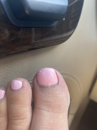 As I was leaving the salon, my flip-flops were sliding on & my large toe got nicked. I asked them if they would please redo the one toe & They hesitantly agreed to fix it.