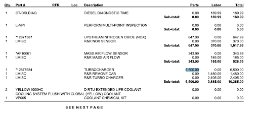 Read moreI took my Chevy Silverado dually here for a workup because I wanted to be sure that everything was in good condition ahead of hauling a load of horses cross country, plus the check engine light and been going on and off intermittently for a week or so. While my truck is a little older as a 2013, it has less than 100k miles given that it is used sparingly in hauling once or twice a month, primarily around Texas. Lamb's entire quote came to $13,256.52, with $6,500 of that being just the cost in parts for a new turbo charger. Because $13k is a heck of a lot of money, I called around and learned that a new turbo charger should be about a third of that price, even when buying from the dealership. I also learned that a turbo charger on a well-made truck with less than 100k miles really shouldn't be on the verge of failing, so I went elsewhere for a second opinion. The garage where I got my second opinion and that I ended up using did not detect any issues with the turbo and also thought that the pricing was absolutely insane. They replaced the NOX sensor for $800 ($250 less than the same work quoted by Lamb's) and that was it! That was the only issue that they found and the truck has since made it to TN and back and to other shows in TX over the rest of this summer. I've been waiting on writing this review to see if something would go wrong in an attempt to potentially give Lamb's the benefit of the doubt in potentially at least being right in at least their diagnostics (setting aside exorbitant pricing) but this has not been the case as the truck has been great. Now, I am fully convinced that Lamb's saw a girl who doesn't know a ton about trucks (I'll be the first to admit that!) and saw that the truck was involved with horses, and thought they could charge whatever they wanted. I'll include a picture of one page of the Lamb's quote so that hopefully it can serve as a fair warning to others. Lamb's didn't end up charging me for diagnostics when I confronted them about the ridiculous pricing and I'm guessing that this was in hopes that I wouldn't write this review, but I feel that I need to share this experience to spare others this experience. I would urge you to steer clear of Lamb's if at all possible. There are too many garages in Austin to use one that is determined to make a buck at the...