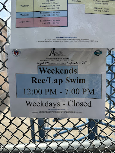 This pool is only open weekends now and it’s a free public pool with lifeguards on duty. The 50 yd length makes this pool great for laps! Love the fact that the deep end is super deep and there’s a diving board. Though it’s near the end of the season, the pool was noticeably dirty on the shallow end. Locker rooms are nice, open air like many in Austin. Only one shower working in the men’s area and it has very strong...