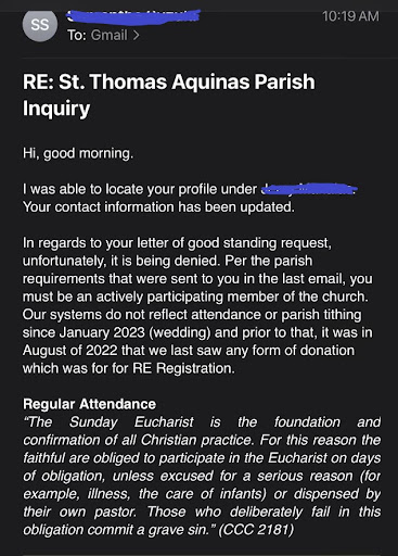 Perhaps it may behoove you all to have whomever is the 1st point in contact for your church not some rude judgemental woman shunning and belittling others in a vain attempt to seem holy and good. Do you truly believe God wants you to berate a cancer survivor and someone who's served the Lord all her life and our country for over 40 years for wanting to come to church at your parish?