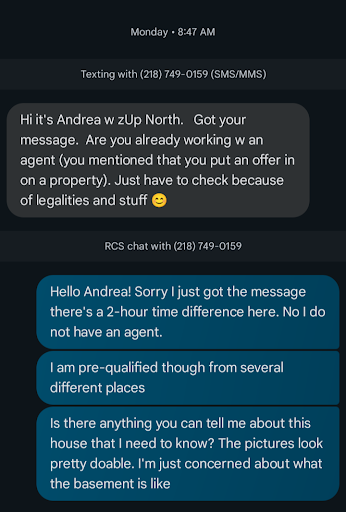 I see I'm not the only person that was treated with such a lack of respect from this company, and I'm sure the owner Andrea will come back with some remark to make it look good. Remember when you're viewing a company to look at fake reviews. Sometimes they can be bought. This company is hands down the worst company I've ever dealt with. I'm trying to find a home in Minnesota where I am from. I called about a listing to Andrea, she called me at 6:00 in the morning and left me a text so that is 8:00 her time. I asked her specific questions about a house at 10:00 am. Instead of telling me what I wanted to know, she said she had to ask me if I had a realtor, and said it was a legal question. First of all I don't need a realtor. And I was going to hire her as my realtor even though it's a conflict of interest. I am retired, so I am not looking at a house in any one area. Not every realtor can work all over the state, but she didn't even ask anymore questions, she just blew me off. I waited all day for a response. Then I called another reality to see if they could help me with the house. I was informed that this is the new normal for realtors, because they don't make a commission for running around. They told me they would drive the 2-hour distance to take pictures of the basement for me, so that I could put in an offer. I got a text back today, and I thought it was them. I asked them if they could be my realtor and put in an offer for me instead of Andrea. I didn't realize this was Andrea texting me. She acted like I didn't have a right to be upset that she blew me off for over 32 hours, saying she was busy. She could have easily texted me and said I will get with you later. But it wasn't important enough to her because I didn't have a realtor and she didn't think she was going to make any money! That is the bottom line folks. Don't do business with this company. They have no respect for a buyer. Especially if you're buying a house that doesn't cost much. I'm going to be reporting her to the Realty ethics committee as well. There's nothing worse than dealing with Realtors like this. She knew I was interested and sent my approval letter. Sellers please pick a listing agent that will sell your home, instead of leaving it on the market to have to mark it down even further because it's not worth their effort. Better yet, sell it yourself. You don't need people like this to sell your home.