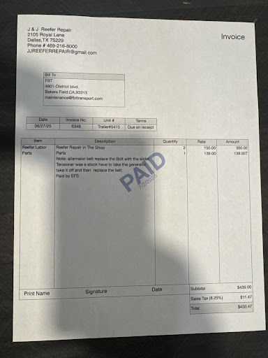 ย ย ย Read moreAny Mechanic out there do not work for this company they're telling people they got a 250 trucks June 27/25 trailer number 5415 we work on this trailer. The bill was $450.47. It took us 15 hour to collect the money. We did not release their trailer now they putting a negative review hiring a different people they have right to put a negative review one time but hiring people from all over the place paying a money and we are looking into take legal action and I am putting the real proof a real review...