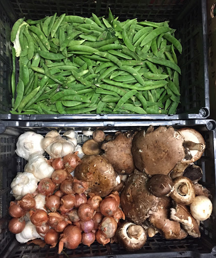 You gotta show up early to truly get the advantage. However, I went to both locations and was able to get: eggplant & carrots (see pic for what I did), red: (pears potatoes and bell peppers), butternut squash, chicken broth, fresh bread and muffins, starfruit, bib lettuce, tomatoes and more. There were also asparagus and other fruit/veggies. ...some items were bruised, of course, but if you're bothered by FREE bruised food, you can pay for the unbruised lot at the store.