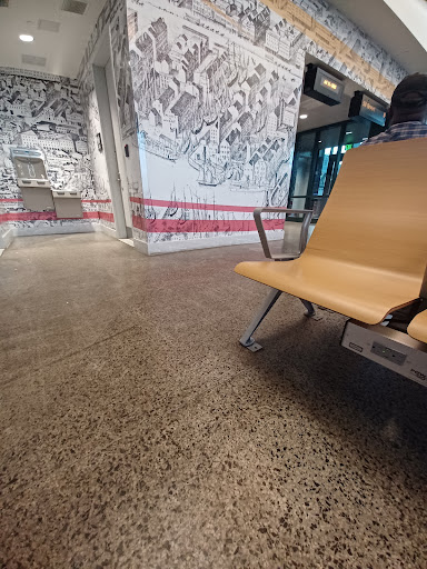 The staff are friendly. The Station is clean and has recycling containers. Each seat has working outlets. There are bike racks. There are places to transport bikes with you on the train. This station is in the same location as the light rail and is 15 min walk from the Lexington and Charles station metro stops. You get off the station and you're right downtown!