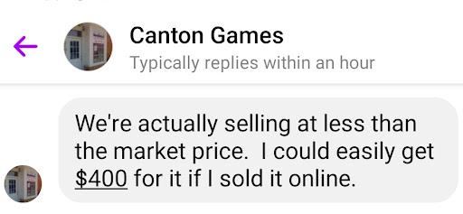 The whole transaction was dicey from the start when I never received a phone call back. I recommend finding a different game store in Baltimore if you are looking for reliable customer service and...