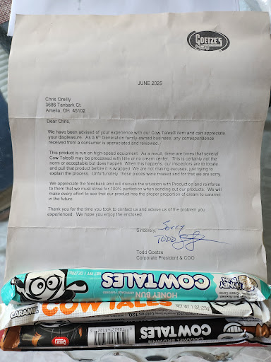 Read moreI purchased a bag of their bullseye caramel cremes only to be horrified by one of the candies having a large insect or cockroach inside it. Several attempts of contacting the company have all lead to nothing being resolved. They have insulted me and claimed I acted "agressive?" and "unprofessional". This is not a company that has the end consumers safety in mind, only the bottom dollar. If I could give negative...