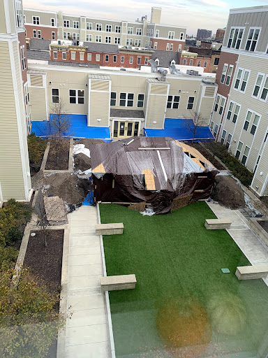 Cons: -Though it was not a surprise, the great deal of extra fees (e.g., location on the inside of the building, pet rent, mandatory “valet waste” program) seemed excessive and added almost $150/month to the base cost of rent. -Turnover of management was high and the staff was poorly responsive to the one major issue we had (A pipe leaked onto and significantly stained the hood of our car in the parking spot we paid $160/month for, and we had to battle with management for them to acknowledge the damage and eventually pay for the car to be detailed). -The courtyard (which we paid an extra $30/month to overlook) was put under construction last spring but the project appeared to be terminated -it has been in a state of disrepair (see attached photo) for the last 8 months, with no explanation...
