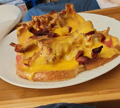 We came back AGAIN to shop at Harvest Fare. What a fabulous grocery store. Their produce is out of this world! The real draw is chicken boxes. Frozen cases of either chicken wings, chicken quarters, chicken breasts and drumsticks. I actually heard another shopper say she decided to stop buying the drumsticks because they were too big! We should all have such problems. And you can't beat the prices. This is my new favorite grocery store. Anytime you can get bacon for under $5.00 a lb is a great time. See my lunch photo.