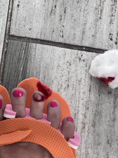 I will never come here again, and highly recommend you read this review before you go if you are looking to try this place out. This was my first and last time going here; I only strayed from my normal salon because my best friend had a gift card here and we wanted to try it out. We made appointments for manicures and pedicures before we leave for a trip this week, and I had the worst experience of my life. The woman who did my pedicure cut my toe so badly that I bled for over 30 mintes while sitting in the chair. My toe bled through a towel and multiple cotton balls, and I spent the better part of those 30 minutes watching her and another woman pour hydrogen peroxide on my toe. This took so long that my best friend completely finished her manicure AND pedicure before I even got out of the chair. The woman who cut my toe clearly did not know what she was doing - she also cut my big toe, but it did not bleed as much - and the bleeding was so bad that I could not even get that toe painted. The photo attached was taken a half hour after the cut; as you can see, the bleeding was pretty significant.