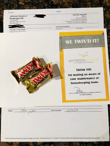 I have had a great experience with all other aspects of Jefferson square (front desk staff, apartment, amenities, work requests, etc.) but the leasing office has continued to be highly problematic. I don't post reviews often but believe it is important for others to hear about my experience...
