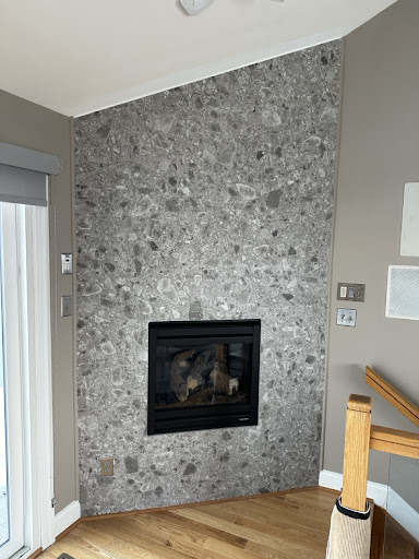 We found one that we really liked, and TopStone took care of cutting it and installing it. We think it looks fantastic, as it really makes the fireplace stand out.