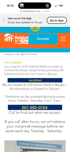 As much as i love that we have a local restore, it isnt that great. I love shopping for materials for a great price along with helping a great cause but the Bangor location doesn't check prices before listing them inside. I have gone inside and they want 15 bucks for a cutoff of sheetrock, which is 15 bucks for a new full sheet. They want a lot of money for arbitrary items, and very rarely ever want to negotiate on price, so it sits in the corner for 6 months to a year collecting dust. I've asked if they accept storm windows, which i have been answered with no, but i walk inside to see storm windows trying to be sold. I do like helping a cause but what exactly does listing items at a price at or above resale value actually help? I like restore but since they moved from Washington St, it has gone downhill. Im edting my review 8/23/23 as i checked out the store again and the prices are worse. Ive seen paint brushes that shouldnt be more than 5 bucks, listed at 20 bucks. Used electrical boxes that are 90 cents new, at 4 bucks. Ive seen a pad of office paper listed for 20 bucks. The windows are terrible, they seem to claim the windows are in new condition but they are bordering 30 years old, the aluminum is either worn or ripped off with the wood fading or rotting, the sash cords are broken off some of them, and they want 90 bucks for them, when they arent even worth 20 at most. There are some half decent ones sitting there with no price but i dont even want to bother asking because im not prepared to negotiate some price thats still going to be atrocious even if talked down. I know peoples opinions on prices are subjective, but in my opinion half the stuff sits there for 6 months until they just throw it out or finally mark it down. Theyre always on the website saying how good business is, but theres hardly anyone there shopping at anytime. I know the store probably wont care about my opinion but they really need to change because it was a great store years ago, and i really dont want them to shut down over the most...