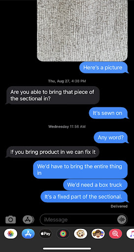 On to the next issue, they didn't even send me the right sectional, let alone the right color or orientation. At this point I called & they offered me $50 or a replacement. Offering the option to replace is the right thing to do, but I had just set it up and we almost had to take the door off just to get it in, or the driver could've just shot it - that may have worked better. Point is, I wasn't going through setting another on up, moving all of my furniture across my house, and disassembling the existing one - so I took the $50 because that's all they could offer on a $1,500 sectional that wasn't even what I paid for. Now, 2-3 months later, one of the sectional cushions is starting to seperate and needs restitching. I've called 4 times and have been given 3 different numbers, none of which have done anything. All they keep asking is whether or not I can bring the cushion in, which is sewn on to the backing. One of their "repair/warehouse" people, Tyler, has asked me to bring it in, which I stated wasn't possible, as it's going to require a lot more than removing the cushion. He then didn't bother to respond until I reached out again, which prompted him to tell me I'd have to bring it in - clearly not listening to anything I said. I should've been smarter when it came to purchasing from this store, as the general consensus is that they do a great job, until you run into an issue. I was supposedly given the owners number and the poor lady I spoke with has been harassed repeatedly with these complaints.