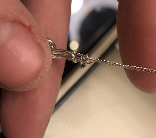 With that same ring, one of the side diamonds fell out after only 1.5 years of wear. My husband had purchased a lifetime warranty on the ring, so we went in to get the diamond replaced. When we went in, we were made to wait for 20 minutes even though there were 3 staff members there and only one other customer there. When we were finally helped, the salesperson seemed annoyed that we were asking for the ring to be repaired. She told us that in order for the warranty to be valid, we needed to come in every six months to have the ring inspected. Even though no one had ever told us we needed to come in every six months—she charged us as if we didn’t have the warranty/insurance that my husband purchased.