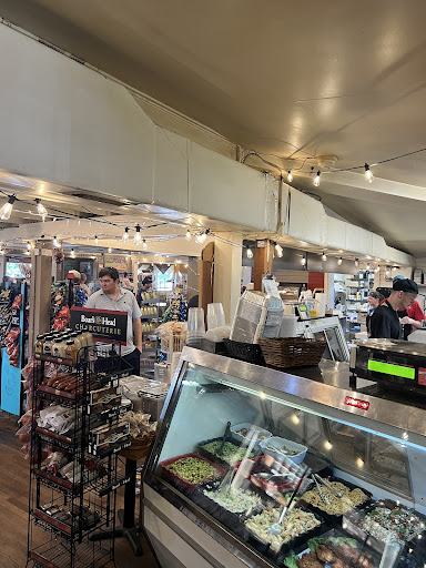 Bigger than a campground market. Smaller than Aldi's. Throw in a one car garage size area of fresh produce. A couple reach in coolers. Even a freezer stocked with a local vendors chicken pot pies and desserts. The hot and cold deli counter is no slouch. Chowder, chili, and soup of the day. There only a small handful of cafe tables scattered around to eat in. A hot or cold sandwich. A fried basket. Homemade picnic salads. I wish I could recall if they sold carryout beer and wine. *2018 Update- the liquor license was sold. They no longer sell beer, wine, liquor. Many people walk in with coolers, and walk out with a picnic at the beach, or on the boat. If you miss the sign, you won't miss the regulars hanging out on the benches out front.