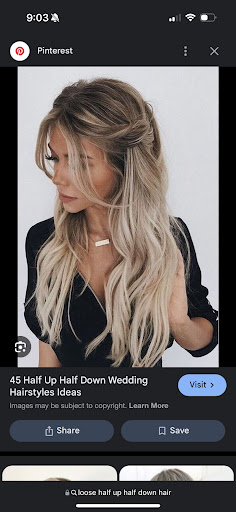 I had some reference pictures I showed the stylist (that were simple and half up- half down). She told me they were updos (they were not) and we wouldn't have time. I said we don't even have to curl my hair but I'm looking for volume. She suggested a blow out. I asked if that would get me the volume because my hair is fine and she said yes.