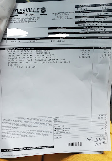 Update... complete May 11th I received a video of my car running and sounding beautiful a day before I picked it up. It was kept overnight to ensure that it held fluids after being test drove. They did have a certified GM mechanic remove, install, rebuild, and test drive my vehicle. To whom mentioned on the notes on my receipt that my timing chain was scratched (among other things) and engine was full of sludge. It's now May 19th and I have never heard, felt, or been in something that runs as smoothly as my Camaro now does. My car did have a remanufactured motor installed and after about 6 months of wait I can say that my car runs as if I just bought it brand new. However, my review still stands for more than 1 reason. The 1st being the lack of communication between everyone who was involved at the dealership and myself. I donât think it was a customer care issue as much as an annoyed that the customer keeps bother us issue. And 2, although the woman who I did talk to finally (in late April) I credit for being the sole purpose as to why my vehicle got done as fast as it did, she did become a really rude with me at the end of the process. At 1st she was willing to be of service, then I decided to write a review so others would know the struggle and issues in case they were looking for the same serves. She called me and asked me to remove both my Facebook review and my Google review. I removed my Facebook review (which im putting back up) and was going to remove Google once I got my vehicle back. However, the dealership did not help me at all during the whole vehicle process, they made me pay FULL PRICE, made me wait 6 months to have a working vehicle, and never really communicated anything with me, leaving me extremely frustrated by the end. Why should I help their business and reviews when they NOT ONCE helped me? And that after insuring me that if I didn't get my vehicle by the 1st Friday of May that they would "take care of me." And itâs unfair to the individuals who might end up in the same situation as me, who can't afford or are unable to have a vehicle for as long as I had to be. Update May 30th, My camaro started to act the same way it had in the beginning when I took it to be worked on. However, I'm taking it to a different place to have it looked at in the hopes that it's a easy fix. As of right now, I'm back to where I was only a few weeks ago. I'm car less with no idea as to what's going on...