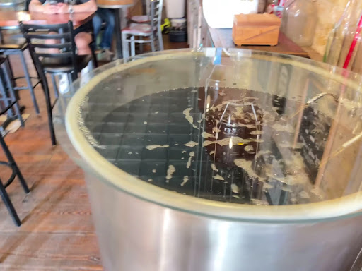 So as a bourbon (technically this is a bourbon distillery, but the way they finish it has to be called a whiskey) fan when my husband suggested we visit the Cooper Shot, I knew I had a keeper! My husband prefers wine and this trip was all about me. We got there on a Friday night and the place was busy we ordered our drinks and headed out to the patio (we were headed to their sister store C&S) the patio was busy and there was live music. We enjoyed our time there Friday night. We decided Saturday to hit the Copper Shot again, because whiskey. April was the bartender and manager she set me up with a flight of whiskeys for a tasting. The rapid age whiskey is stout, but not just WHAM here's 100 proof whiskey, it has a nice flavor and finish. The aged whiskey of course was smoother, and just as good. Then I had the Pecan Shine! Oh my goodness. Smooth and just when you think that's niiice up comes the pecan. That was a nice drink. The Honey whiskey honestly was delicious, if not a little too sweet for me, but I wouldn't turn it down. It was a nice drink. My husband and I spent the better part of the afternoon just day drinking and watching a rather intent busy guy doing everything that needed done and helping April as she needed. I asked if he was the brains behind this project. He said he was more like the idiot. Steve loves what he does and it proud of the product he makes, just talking to him it's evident. He is an authentic Caribbean Rum distiller -and his rum does NOT disappoint just trust. He graciously gave use a tour of his operation he didn't have anything in his vats as he just got back from Scotland for a class in scotch production. His vats are open so you get "a taste of Bastrop" in his bottles. What's in season helps flavor the end product. We quickly decided this would be our hangout if we lived in Bastrop. So if you get the chance swing by and get a drink of any of the fine offerings from the Copper Shot hang around and talk with the knowledgeable staff and enjoy the atmosphere of the 150 year old building that houses Copper...