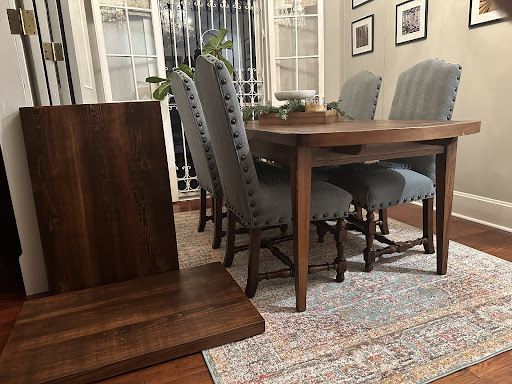 We could not be happier with our table from All Wood! We brought in a picture of a table as inspiration for what we wanted and the final product was even better. Becca and the team took the time to understand what we wanted from the start. We wanted a 6 foot table with boat-ends and the option to extend it up to 10 feet with company boards. They initially did not think they could design it exactly how we requested, but we ultimately came up with a design we liked. A few weeks later, Becca called me with an idea on how to build the table to get the design exactly how we had originally wanted it. It turned out beautiful. Very detail-oriented. High-quality materials and build. She also burned me and my wife’s names on the underside of the table. They delivered the table to our home, set it up, and advised us on proper care and maintenance. All around great experience! The attached pics are the table at 6 feet without the company boards. The company boards are on the floor next to the table...