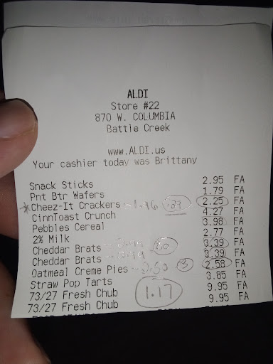 Read moreI have been shopping at Aldi, primarily, for about 30 years. I am a huge fan. For the quality you get, the prices cannot be beaten. Their employees are fairly well trained and work hard. You will get in and out of Aldi 20% faster then a larger grocery store if you have a full cart and are doing major shopping. If you only need to get 5 or 10 items, then it jumps to 100% faster, all other things being equal, because of the decreased distance you have to travel to get various items. They don't have everything though. So the convenience for a gourmet cook, for example, is definitely not there. I used to go a lot more often. Recently though, they have stopped putting $1 and $2 off stickers on bakery items and meat items that will go bad within the next day or two. This is one of the reasons that I have shopped there, primarily, for the last 30 years. For this reason, I will not worry if there is an Aldi's near my next home when I move out of state semicolon and I also sometimes shop at Family Fare now because...