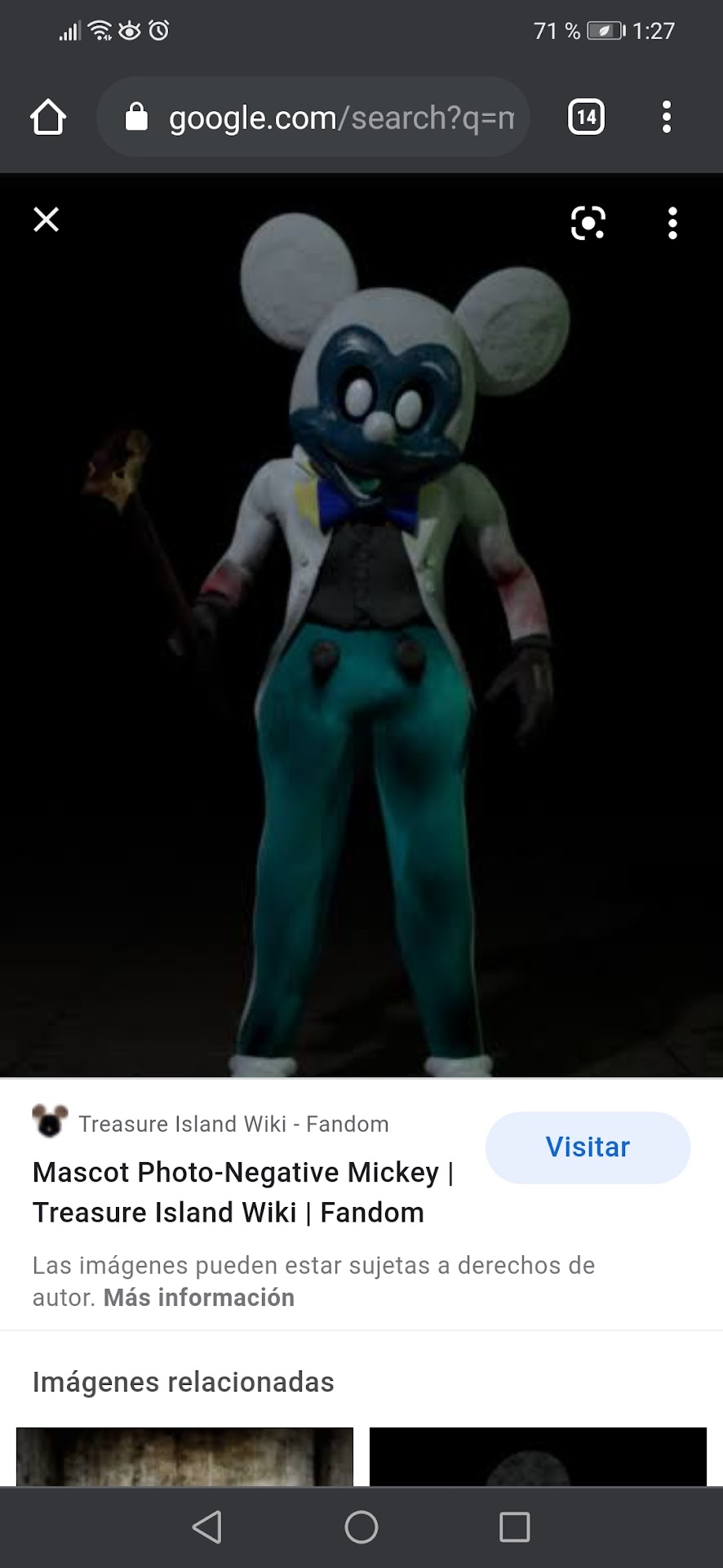he found a picture of masscot mickey mouse but with a photo graft it's was pictured photo negative causing something dark about it abandoned by disney that the owner of discovery island was walt disney and then...