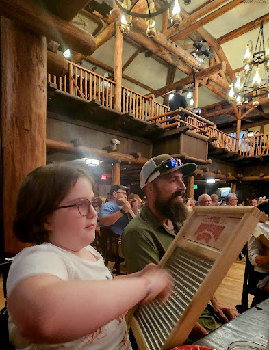 I WISH I'd taken pictures, but we were SO entertained and SO engaged from the moment we sat down, it didn't occur to me to in the moment. We weren't staying at Wilderness Lodge, so we checked in at the gate and we're directed to the parking lot where we caught a bus to the Pioneer Hall. We arrived an hour prior to the show and we spent a little time at the arcade (tiny but air conditioned lol) and the Trading Post to window shop. We sat at our table and a super cheerful server came over with fresh cornbread and honeybutter (ermagherd the butter) and coleslaw and baked beans and asked about our drinks. As you're cleaning off your bread, the server is asking what you'd like seconds of while she's adding baskets of ribs and fried chicken, Mac and cheese, mashed potatoes. The show starts almost immediately with old Western tunes and a lot of old timey comedy. We absolutely loved it. Super kid friendly, with the occasional joke that only the parents might get. They have everyone clapping and singing along to old folk songs we grew up with. While we ate dinner, the singing troupe came around and helped my daughter and some others feel special for their birthday or anniversary with songs and spotlights. Every member was featured and they did not disappoint. Every single one was beyond talented. Dinner ended with a cast-iron strawberry shortcake for the table to share. Venue was gorgeous. Cabin/Old West Hoedown feel. Everything was intricate and ornate and well lit. 3 categories for seating. Category 1 is the ground floor in the front, towards the stage, category 2 in the back. Category 3 was in the mezzanine with 180 swivel chairs to view the show from above with your back turned to your table. I will say this: we purchased tickets for Category 1. I understood I booked 2 weeks before, and expected to be sat in the back of the Category. I did not expect that the tables on the outside of the room would have obstructed views. Had I known that was a possibility, I'd have bought Category 2 and hoped for center seating. The servers were stellar from checkin to the bus back to the car at the entrance of Wilderness Lodge. The musical cast was AMAZING. They were beyond talented and incredibly funny. They engaged the whole audience in a way only Disney does. The food was great. Only complaint would be the coleslaw. Idk if it was a recipe or if something was wrong, but I'd never tasted Cole slaw like that, and Noone in our family looked happy after their single bite lol. The beans were great, the honeybutter on the Cornbread gave me life, chicken and ribs were perfext and Noone left hungy for sure. Make sure you take extra time to enjoy the grounds. You could easily stayed at Wilderness Lodge for a whole vacation and never set foot in a theme park. It's beautiful and there's SO much...