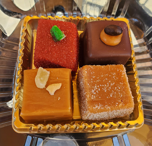 So, the red one is Strawberry Daiquiri. The one with a coffee bean on top is the Espresso Martini. The next one was Bahama Mama. I guess that one tasted a little tropical. The last one coated in sugar is Lemon Drop Martini. Who knew? They still tasted good. After all, it is caramel. We do love caramel.