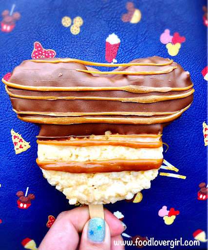 Mickey Crispy Treat with Werther’s Caramel was first dipped half way in chocolate, and then god some sweet drizzle from caramel heaven across and over it. And let me tell you, it was so good! Adding the caramel flavor to the mix was brilliant, and even better, made super fresh...