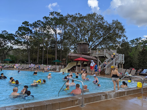 Read moreIt's not the sand bottom of Beach Club or great looking as the Polynesian. But it's big, has a water slide, plenty of seating, and one if the nicest campground pools you'll get to be in. Snack and drinks available for purchase. Staff plays games with the kids. Parking for golf carts in...