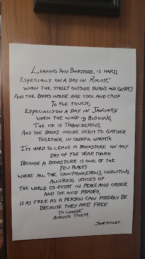 Read moreMaybe I would try it again based on the positive reviews I am reading from more recently… I am hugely into reading and have been a lifelong bookworm. I love independent bookstores and always want to support them. I was excited when I saw this store years ago, as it seemed like a unique and special bookstore with lots of personality. Unfortunately, I was really disappointed with my experience there. At the time, I was in my late 20s and brought my brother and his friend in with me - who were respectful boys in their late teens. The associate seemed extremely judgy and anxious to have us present in the store, and followed us around closely like she was worried we were going to break something or do something wrong. I felt incredibly unwelcome. I have...