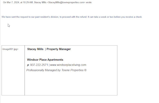 Read moreI lived at these apartments for the past three years. I moved in when it was owned by another company but as soon as Towne Properties took over everything went severely downhill. If I had a problem I would call and call and call. Leave voicemail after voicemail. I would never get a response which meant I had to drive over to their other property since they removed the leasing office from Windsor Place. The head property manager made it seem like she cared but it was clear she didn’t. Was extremely condescending. Classic case of caring only about the money and not the livelihood of the people you are housing.