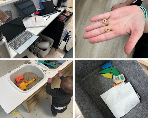 On April 26, I stopped in from 2–3pm, just before a $400+ birthday party. The space was in disarray—uneaten Cheerios on the floor (which a child had already started eating before her mother pulled more out of her mouth [pictured below]), garbage mixed in with toy bins, and a teen staffer doing homework at a fully set up workstation behind the front desk. I told her directly to clean, and only then did she start—but she didn’t finish before guests arrived. I sent a formal, photo-documented email to the owners that same day while standing in the estiblishment.