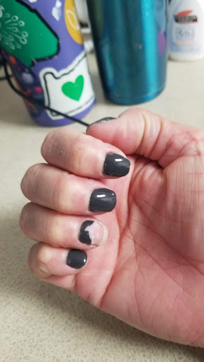My existing manicure was only 5 days old, but I wanted to change the color. My polish was removed haphazardly leaving residue around the cuticles, then she polished my nails - applying it too thickly and unevenly (some of the edges and tips were not covered). They DO NOT have nail dryers so they turn on a little fan to help dry your nails. And, they do not have quick dry top coat - so you end of with FOUR coats (base, polish x2 and top coat) of polish and a tiny fan to let them dry. She did not clean around the edges of the nails so I have polish on my skin.