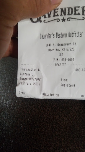 Read moreWas very disappointed with my visit today. I live over 40 miles from Cavenders, so my visit was well planned out, as I had a Dr appointment at the VA today. I needed a new winter hat. When I arrived I was greated very pleasantly. I went straight to the Hat Bar. I was in there it seems like 20 - 30 min. Periodically i would step back and look at the front to see if anyone was going to come wait on me. After my greeting not one employee approached me or spoke to me. I finally decided to leave, but need the restroom first. I walked to the back of the store but did not see it. I was going to go back to the Hat Bar one more time, but when I saw what appeared to me as 3 available employees standing around the register area chatting it up and looked right at me I had enough and left. Not 100% on the time period I was there. I left to go to Cavenders from my Daughters house on the south end at 1:17. So I was probably there 1:45 - 3. I am wearing a brown jacket with hood, Vietnam Veterans hat and I have a beard...