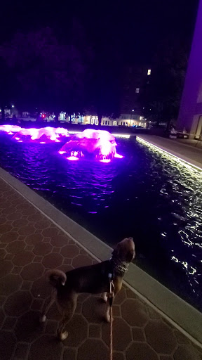 The fountain spews water high in the air at all hours from spring through fall and is lit up at dusk, gradually changing colors, offering a beautiful glow in the night. Several of the surrounding buildings have reflective glass on the front of them and it further stretches the fountain's glow. The fountain and its surroundings are well-maintained. Just this spring (2023), the grass surrounding the fountain was replaced with turf and this summer the water pipes are being replaced.