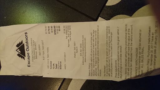 Read moreI'm a new Escape Outdoors customer and I'm really happy with their customer service from Joe. I was online shopping for Cyber Monday and needed some help with a few orders. An email request for a price adjustment for one order was answered within 30 minutes. My phone call for help to change a return to an exchange was also handled promptly by Joe - an actual person, not a machine. This store has a great product selection. I was able to find a popular jacket in the color and size I needed, which was either more expensive or sold out elsewhere. Escape Outdoors helped me make someone's Christmas wish come true and their excellent customer support made me feel like my money...