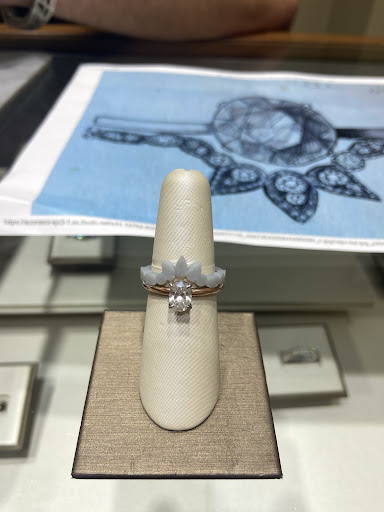 Right away I was met by Matthew, the son of the couple who started this family business. He was super kind and personable and really wanted to find something that would fit our budget. He started by cleaning my mom’s ring which has been collecting dust since she passed in 2000. This meant a lot to us. He also found a diamond that was the same as the original size and I was surprised to find it was in our budget.