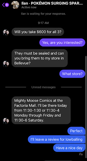 I saw the previous poor review regarding the pricing; I hope this helps explain the displeasure from collectors who just want to be able to buy product at reasonable prices, and it would be great to support local businesses at the same time, but it really cannot be justified at these price points. The Pokemon market is not in a good place right now with the extreme demand/supply disparity and scalpers taking advantage of it, and it is disappointing to see a local business partake in...