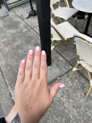 LONG ONE. Scheduled an appointment for a manicure and pedicure day before Mother’s Day as a treat to myself. Came in early and did not have to wait at all. The inside is nice. Very small selection of colors. The pedicure chairs do look a lot nicer than they feel. It was VERY busy which is to be expected the day before Mother’s Day, that being said, they paid no attention to me. Everything felt very rushed and like I was charged for something I didn’t get? Pedicure consisted of cuticle trim and dremel filing, a sugar scrub and the nail polish. Only one coat. Application is OK. No lotion. Moved over for the gel manicure, I got a cuticle trim ( pulled a dirty trimmer from her pocket and sprayed it with disinfectant??) and they filed and shaped them well. The lady then left to go attend to other customers (seemed like they were regulars) someone else came by after about ten minutes and did my primer and base coat, she came back to change the light I was using and left again. Finally came back and did the gel color. Again application isn’t spectacular. Puts my nails to dry, leaves again. Randomly without saying anything comes up and starts massaging my neck. After the color was dry someone else came over to do my cuticle oil and lotion. Won’t be back again. Not...