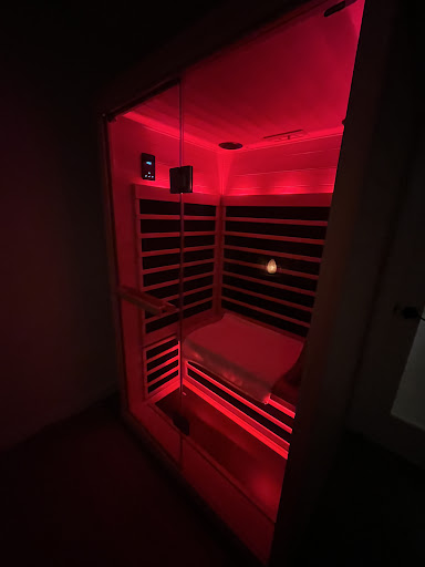 If I wasn't already relaxed enough from my massage, I sure was after my post-massage 30 minutes infrared sauna treatment. In a room entirely to myself, I was able to relax in a Papasan chair in my robe with a glass of cold water before I entered the sauna. This immaculately clean sauna was heated to about 135 degrees and seats two, a perfect size to sit in or lean up against the wall with your legs propped up. I'm not one who can sit for an entire 30 minute session in a sauna so it was nice to be able to get out and grab some more water, and utilize the ice chilled hand towels provided before going back in for another round.