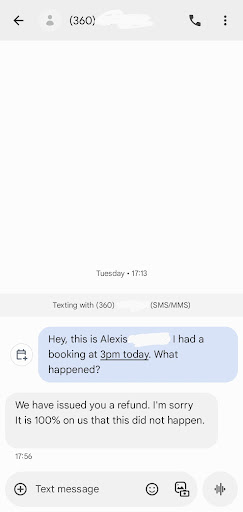 They completely no-showed me and are now ghosting me about the $25 deposit that hasn't been refunded.