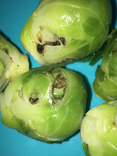 Noticed a lot of stems in them, cooked them for a while, once they were unthawed, stirred them several times. That's when I noticed the brown thing in them, which I hoped was a stem, got it out, it was the shell part of a big bug, possibly a Roach.