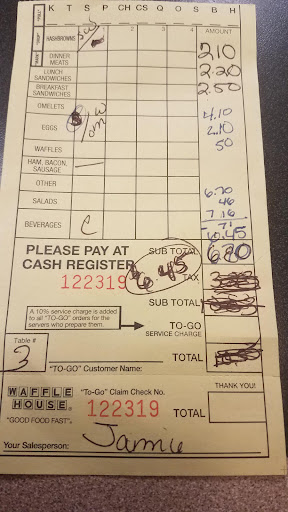 Read moreThis Waffle House was disgusting! Ants were crawling all over our table, we informed the waitress she said they knew about the problem. She did not offer us another table. Of course that would have meant she or the other waitress would have had to clean a table. But neither one seemed interested in cleaning. The other waitress was too busy on her cell phone, then her family came in so she couldn't do anything. Very disappointed...