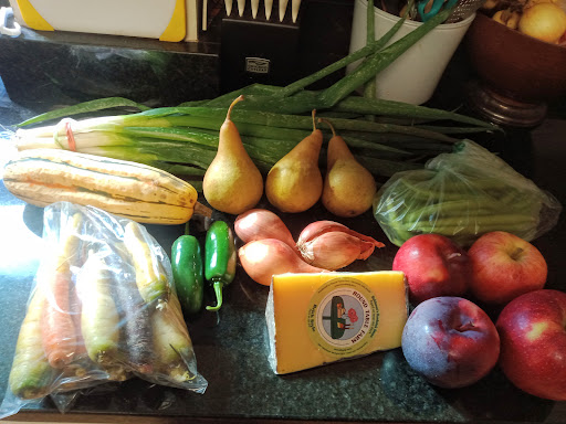 Read moreFirst time going, so glad I managed to stop by before the season ended! Got some apples (already cut into one to go with the Amazing cheese from Round Table Farm, forgot how good fresh farm grown are!!), pears and delicata squash from Nicewicz Farm and some HUGE scallions (so big, I thought they were yucca) and equally huge shallots, bag of multicolor carrots, green beans, and jalapeno peppers from Hutchins Farm, can't wait to make dinner! And the aforementioned cheese.. aged perfectly for that salty tang you only get from quality cheese! Wish I'd gotten a block of the other variety they had...may got back next week and get more! Wish I hadn't...
