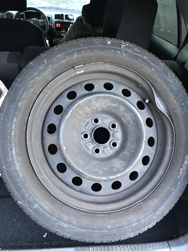 That pothole gave us a flat tire and broke the rim :(