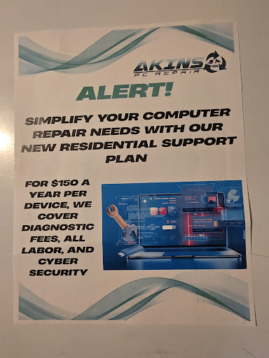 Read moreBig shout out to Cody at Akins. Last night, I brought my big, 1980’s upright gamer console to him in the late afternoon. It is quite heavy and simply didn’t work. He and 2 other of his friends, who happened to be at the store, helped unload my arcade and got it in the shop. He said he would get to it ASAP. By the time I got home, he was calling me saying it’s ready!!! It needed a whole new screen. He stayed open past closing and again helped me load it back into my truck. The price was VERY reasonable. The coolest part of my story isn’t my experience, though. When I first arrived to get my unit back, he was with another customer. There was a very elderly (90’s plus) gentleman who was having issues with his PC. Cody treated him with respect, dignity and courtesy, although the gentleman was extremely frustrated and a bit angry at an issue unrelated to anything Cody had control over. Nevertheless, the old guy left happy and in good spirits by the way he was treated. You learn a lot about a store owner when you watch him interacting with another customer. I HIGHLY recommend Akins PC Repair and will use him myself...