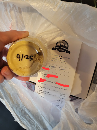 Read moreI usually love this place...but today I am a little bummed. I ordered the Cookie Dough Parfait. I received a cup filled with just warm cookie dough. When I let them know, the sweet girl on the phone said she didnt know what the edible parfait was, and that she thought it meant just cookie dough, so thats what she gave me. I explained that it typically comes with ice cream mixed in - to make it a parfait. She apologized, and its fine, but I hope this helped her learn the menu item so the next customer enjoys what they order. The date on the bottom of the cookie dough also says 9/25, and today is october 18th. I'm hoping it was frozen until very recently, because it was very warm when it arrived to me. Didnt seem to have even been refrigerated in...