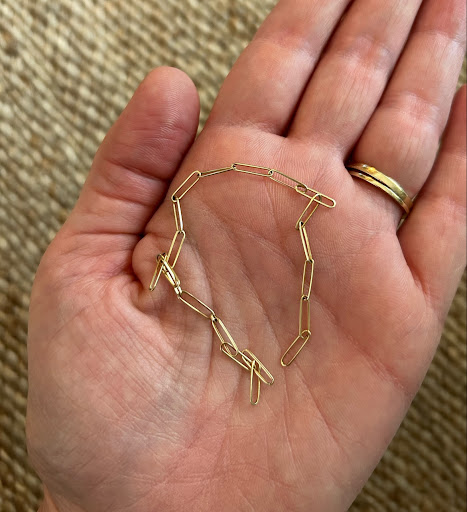Read moreMy permanent jewelry experience at Nashelle's was overall good, and I was happy with my bracelet when I left. However, it has now been 6 months and while the bracelet is still on my wrist, it has stretched out incredibly (+1") and the decorative gold tubes slide around like loose beads. I has them weld the bracelet fitted to tight to my wrist, and I now can slip it off over my hand. I understand these are not 'forever' bracelets, but I wish I would have been warned in the shop that these do tend to stretch out. I may have selected a more robust chain, or one without tubes. (See original photo of chain, and then the stretched out chain today).