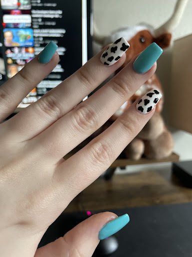 I got a full set of acrylic nails (turquoise and cow print because yes) and they turned out so pretty, exactly what I asked for and while doing the spots on the cow print nails he even offered to let my boyfriend try out the technique he was doing so he was involved too! Men! Going to the salon will be so much more fun when her artist lets you paint on her nails too haha!
